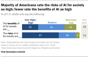 Key findings A majority of Americans (57%) rate the risks of AI for society as high. Far fewer (25%) see