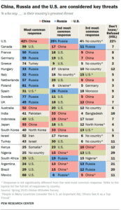 China, Russia and the U.S. are the countries most widely viewed as international threats across 25 nations surveyed. In fact,